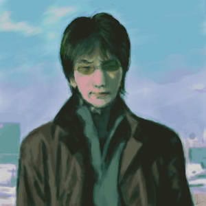 落ち着いた感じに古井さんを描かれたイラストです。