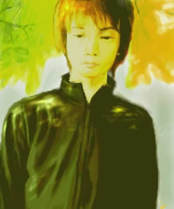 “木漏れ日”というタイトルで、岡本さんを描かれたイラストです。