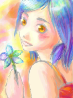 18thシングルのサビの歌詞のイメージで、青い花と七さんを描かれたイラストです。