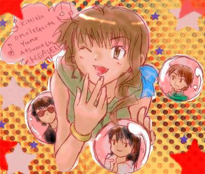 18thシングルをイメージして、由利さんを中心にメンバーを描かれたイラストです。