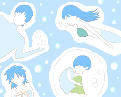 まるで水の中にメンバーがいるかのような、涼しげで綺麗なイラストです♪