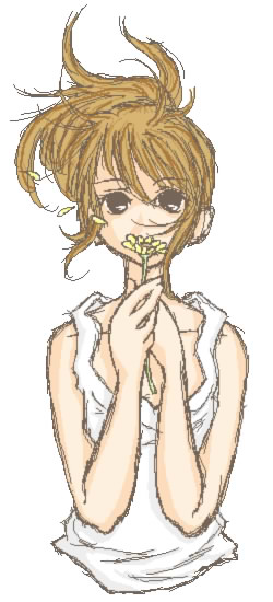 “夏の終わり・・”のタイトルで、ガーベラを持つ由利さんを描かれたイラストです。