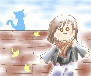 “空色の猫”と題し、空色の猫と七さんを描かれたイラストです。