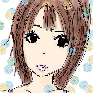 由利さんの表情と、水玉の背景が、とっても爽やかなイラストです♪