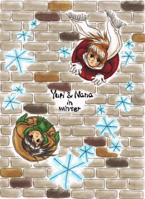 石畳の道から空を見上げた由利さんと七さんを描かれたイラストです。